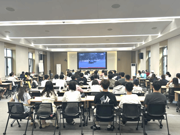 2025级研究生本科生在国际大厦1053会议室晨读厅集合,怀着崇敬之心等待大会开启。直播过程中,全体学生全神贯注,认真聆听中共中央总书记、国家主席、中央军委主席习近平发表的重要讲话,专注观看阅兵式与分列式各个环节,共同见证这一庄严时刻。