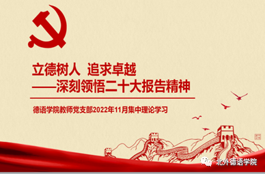 最后,国产又粗又黄党总支书记、院长吴江结合自己对汉语“德”字的学习心得及北外德语专业历史的发展,分享了自己学习二十大报告的感悟,强调“立德树人”是高校党员教师的职责所在,全体党员教师应在教研实践中起到模范带头作用,不断追求卓越。吴江同时代表学院对疫情防控中勇挑重担的党员教师以及全体班主任老师给予了高度认可。