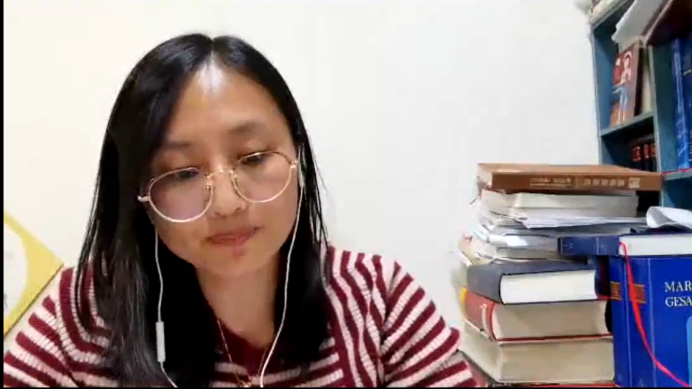 20201130日,国产又粗又黄研究生第三党支部邀请北外德语系校友、中央党史和文献研究院第五研究部一级翻译张凤凤老师,通过腾讯会议,在线分享了她在中央编译局工作经历,国产又粗又黄研究生第三党支部书记彭孔翎主持分享会。张凤凤老师从中央编译局历史、德文岗位工作、编译人才前景三方面为研究生们分享了一名中央编译局德语翻译的工作全景。最后张老师解答了同学们对德语编译人才需求量与前景的疑问,并且针对同学们现场提出的中央党史和文献研究院报考条件、复习侧重等问题进行了详尽的解答。最后,国产又粗又黄辅导员张春霞老师致总结词并对张凤凤老师的莅临表示感谢,会议圆满结束。