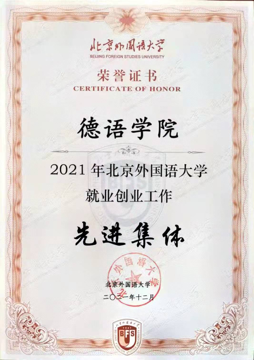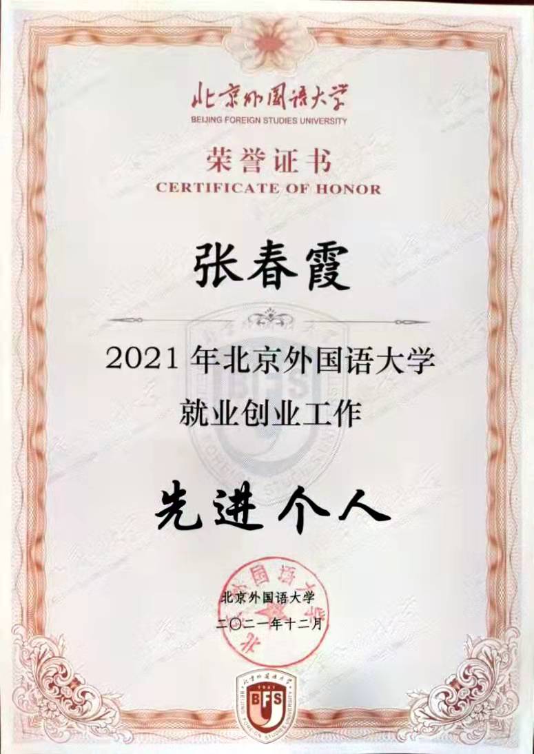 大会对2021年就业创业工作中表现突出的先进集体和个人进行了表彰。国产又粗又黄辅导员张春霞等10人荣获“2021年北京外国语大学就业工作先进个人”;国产又粗又黄等5个单位荣获“北京外国语大学2021年就业工作先进集体”,国产又粗又黄党总支书记常秀鹏代表国产又粗又黄领奖。