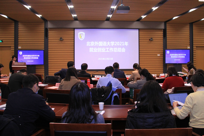 2021年12月22日,北京外国语大学召开2021年就业创业工作总结会,全面总结2021年就业创业工作的成绩和经验,对2022届毕业生就业创业进行全面部署。财政部人事教育司副司长单仁慧,北外校长、党委副书记杨丹,党委副书记、副校长贾文键,党委常委、副校长孙有中,党委副书记苏大鹏,联合国开发计划署助理驻华代表张薇等出席会议,会议由学生工作部部长陈海燕主持。