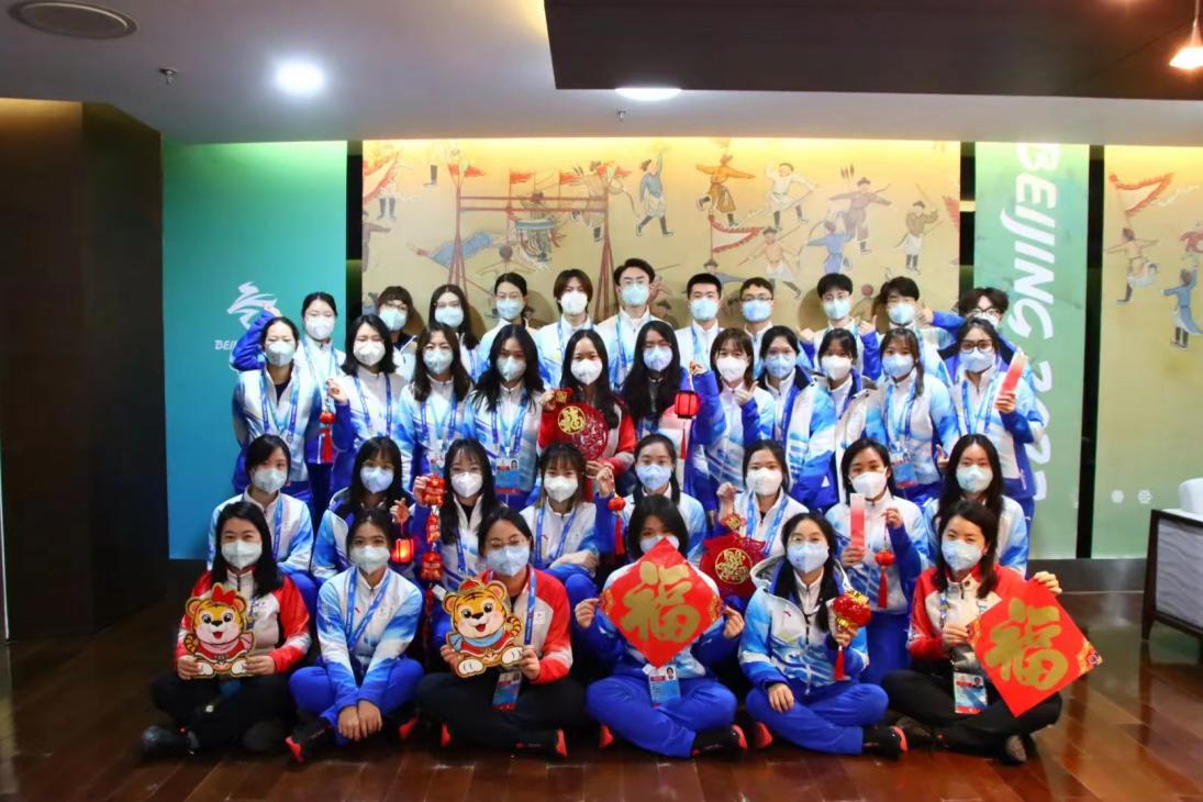 奥林匹克大家庭酒店的志愿者们在驻地开展了新春游园会,组织抽奖、拜财神等活动。