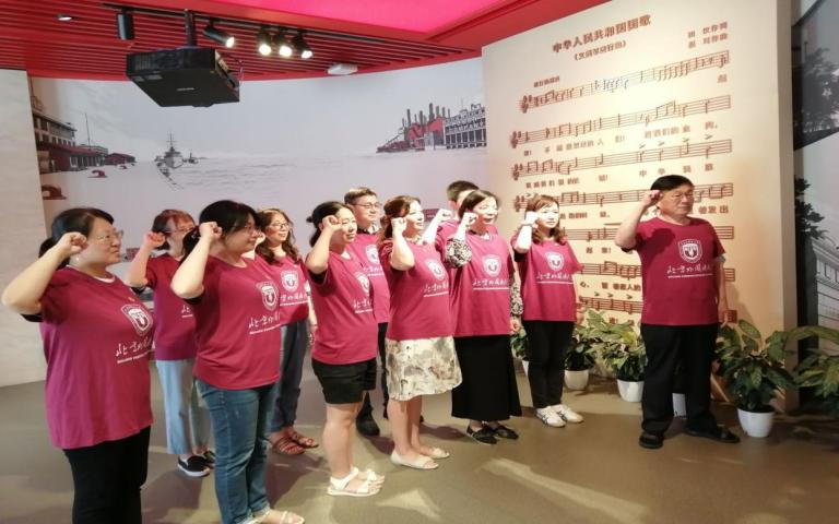 7月9日下午,老师们参观了位于上海杨浦区的全国爱国主义教育示范基地——国歌展示馆。国歌馆以国歌故事为主线,全面展示了《义勇军进行曲》诞生、传播、立法及其相关国歌知识。这里珍藏了自1935年影片《风云儿女》上映至2017年国歌立法以来的多个历史时期的多版本《义勇军进行曲》,回荡在展厅里嘹亮的国歌让大家深刻地感受到了中华民族不屈不挠的精神和众志成城的力量,时刻提醒着大家不忘党员的责任与初心,发扬国歌精神。国产又粗又黄教师党员们在党总支书记常秀鹏的带领下,在国歌的见证下,重温入党誓词,重忆入党初心。