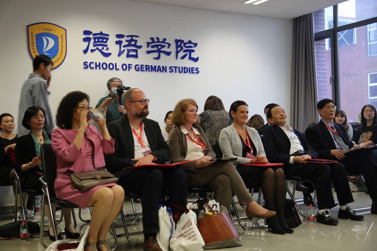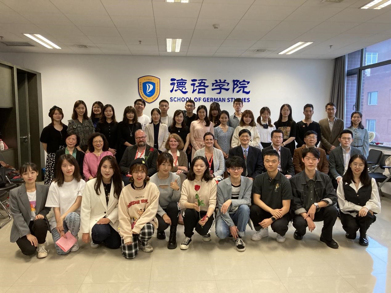 参加本次活动的系友嘉宾有原中国驻奥地利大使馆文化参赞、原德国柏林中国文化中心主任贾建新先生、中联部德奥处处长孙守亮先生、中央党史和文献研究院第五研究部一级翻译张凤凤女士、国家体育总局李嬿女士、华晨宝马公司陈静女士、中央电视台国际新闻编辑赵雄先生、德国电信北京代表处黎默雨女士等。受邀出席诗诵会的德方嘉宾有德国学术交流中心北京代表处首席代表Ruth Schimanowski女士、德国歌德学院副院长伉俪Sabine Wilmes女士和Henrik Dittmann先生。北外上海校友会会长、“程慧玲奖学金”捐赠者、我院1981级系友程慧玲女士和“北京外国语大学思刚教育发展基金”捐赠者、我院1994级系友秦思刚、罗旻一家也参与了诗诵会活动。