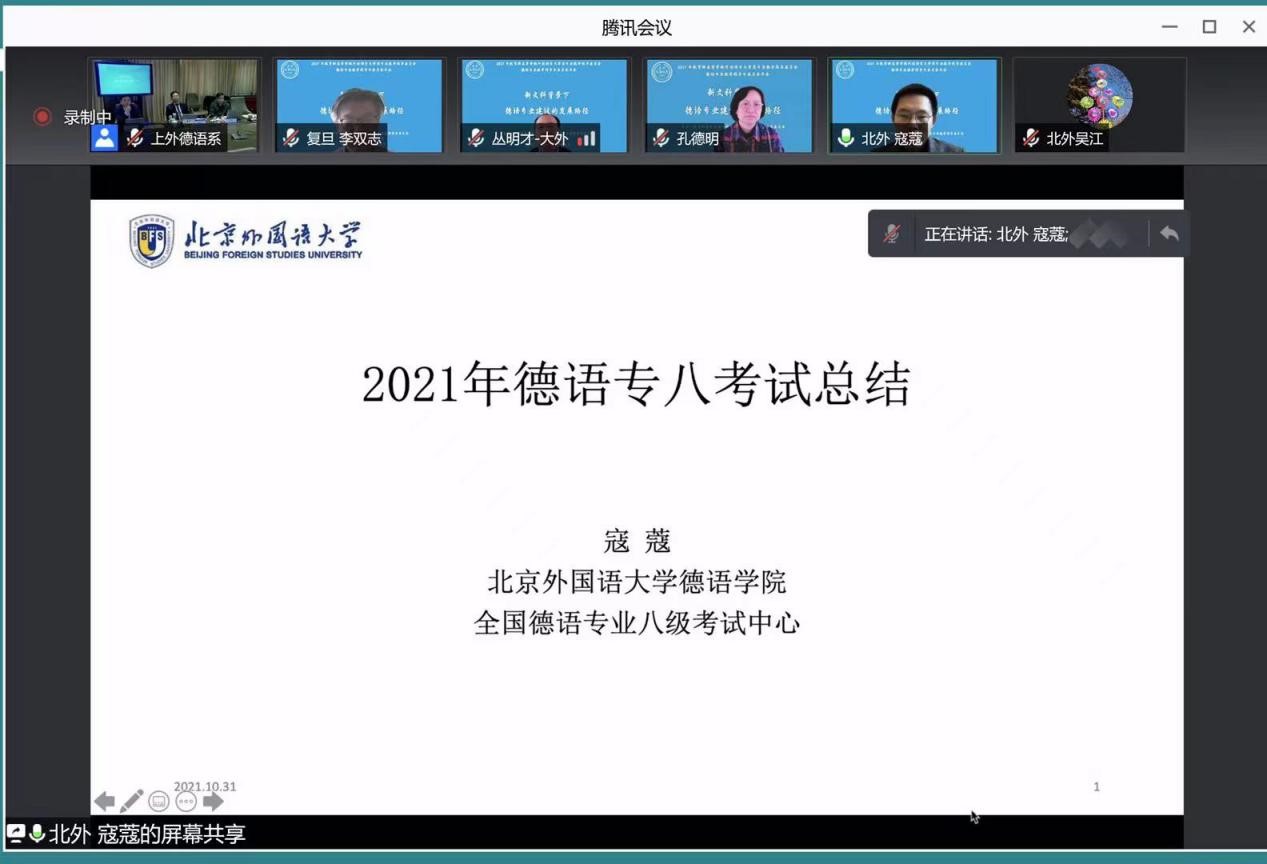 全国德语专业八级考试中心执行主任、我校国产又粗又黄教师寇蔻就2021年全国德语专业八级考试情况作了大会报告。