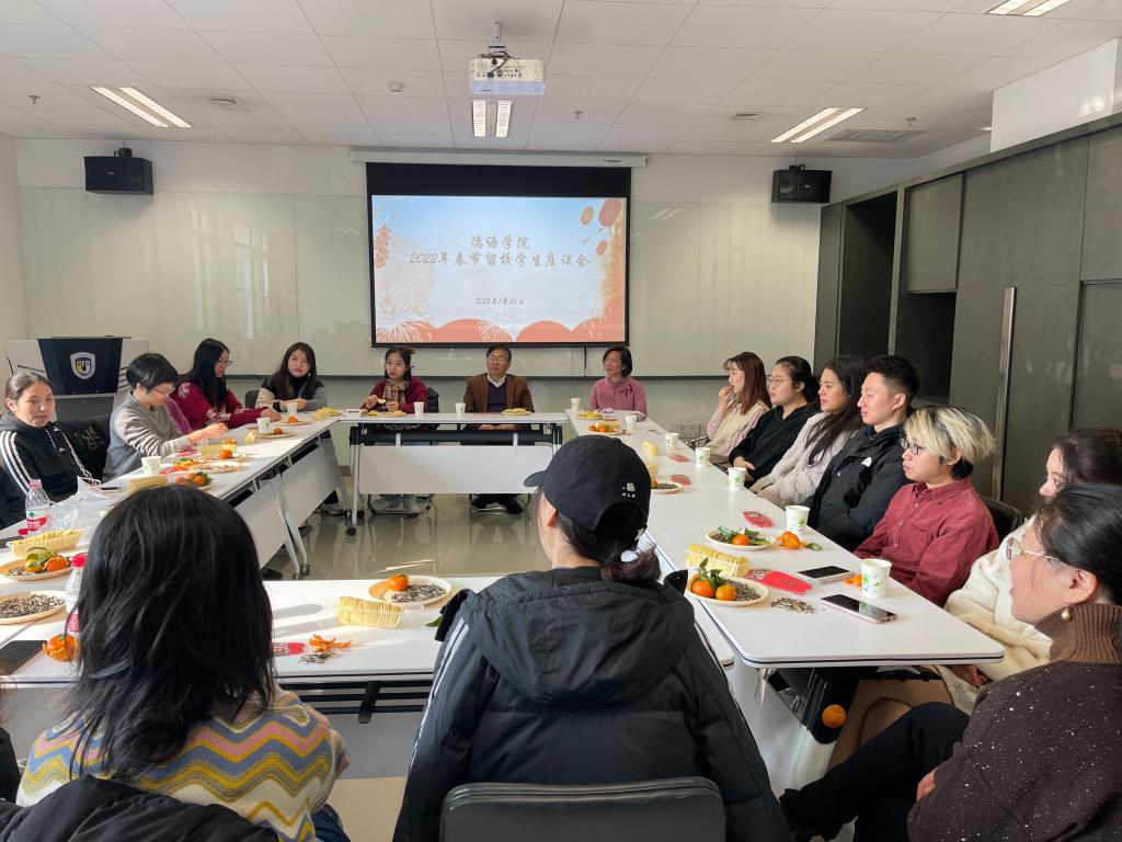 2022年1月30日上午10点,国产又粗又黄在1053会议室举行春节留校学生慰问座谈会,国产又粗又黄党总支书记常秀鹏,党总支副书记、院长吴江,副院长姚燕、教工党支部书记张晓玲、辅导员张春霞、张婧,20余名春节留校学生参加了座谈会。