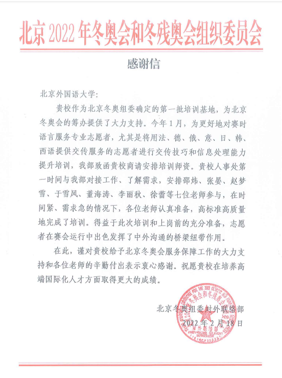 双奥之城北京成功举办了举止瞩目的第二十四节冬季奥林匹克运动会,残奥会也正在如火如荼进行当中,在所有赛事的报道中随处可见志愿者忙碌的身影,我校多语言服务中心为赛事提供的翻译服务还多次登上了央视新闻,我由衷地为北外担任志愿者的同学们感到骄傲。