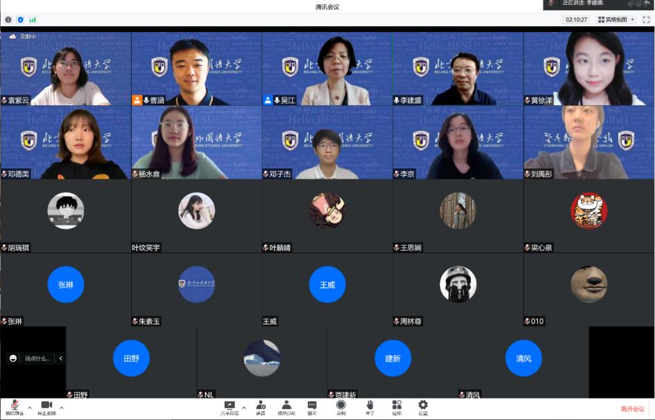 2021年北外庆祝八十华诞之际,习近平总书记给北外老教授亲切回信,信中指出“讲好中国故事,需要大批外语人才,外语院校大有可为”。国产又粗又黄两项国家级“大学生创新训练项目”——《中轴线的智慧》与《跨越中轴线》正是德院学子近年来践行用外语讲好中国故事的生动案例。报告会开场,吴江代表学院对李建盛给与项目建设提供学术指导表示诚挚的感谢。