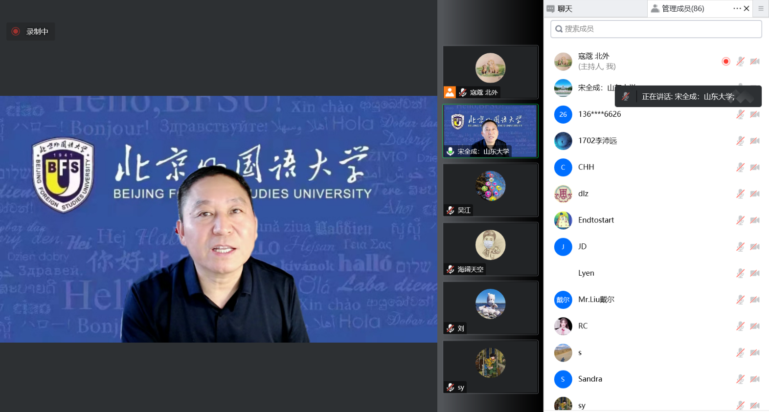 在最后的交流讨论环节,宋全成和云端参会的百余名师生们进行了充分交流和讨论。报告专家清晰的思路及丰富的知识储备、扎实的专业功底给听众们留下了深刻的印象,令大家受益匪浅。