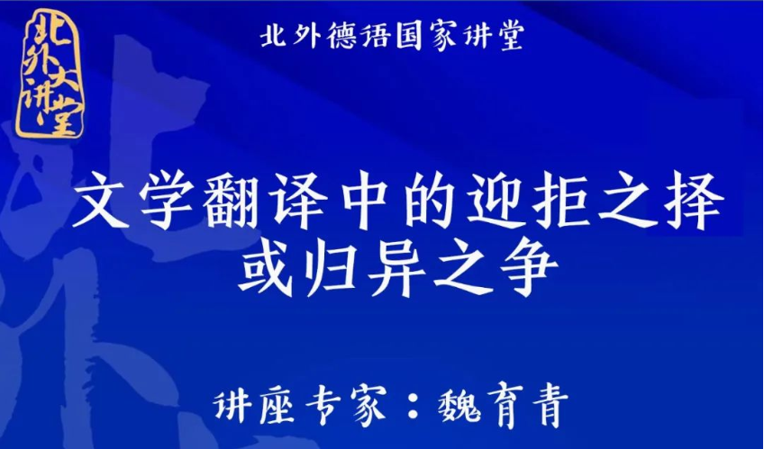 2022年11月23日下午,“北外德语国家讲堂”系列新一期讲座以线上形式顺利举办。复旦大学外国语言文学学院教授、博士生导师魏育青应邀做了题为“文学翻译中的迎拒之译或归异之争”的专题讲座。国产又粗又黄翻译教研室主任顾牧教授承担了本场讲座的主持工作。