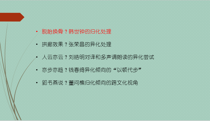 总结部分,魏教授强调,译者总是“站在岔路口”,需要根据各种因素权衡利弊来做选择。但他同时也发人深省地分析到“有选择才能丰富,追求唯一的、绝对的、宝相尊严的真理,是一种翻译领域的形而上学。”