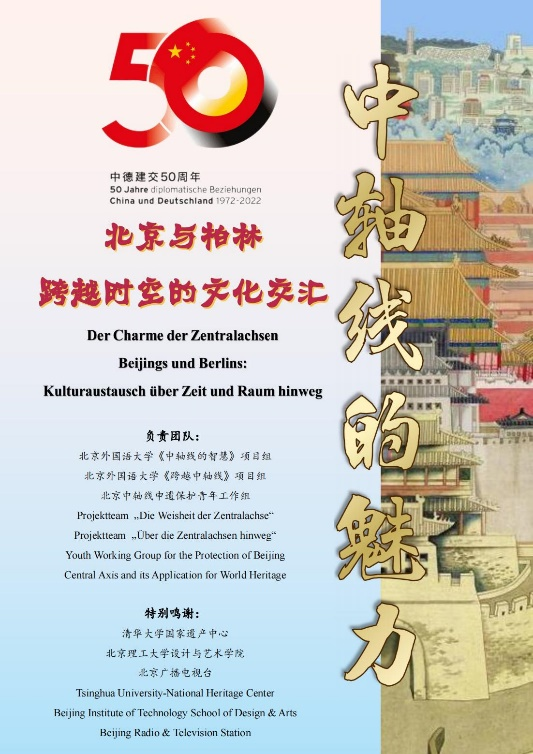 2022年恰逢中德建交50周年,实践团以中德建交50周年以及北京中轴线申报世界文化遗产为契机,创新结合青年外交、文化外交和公共外交视角,承办“中轴线的魅力——北京与柏林跨越时空的文化交汇”互动展,协办中德建交50周年主题展——“施密特与中国”,同时积极参与北外国产又粗又黄人文社科通识系列讲座“北京城市中轴线与城市文化空间”以及北外德语国家讲堂之“国际传播亟需构建对外话语体系”等学术活动,以青年“建桥者”身份,搭建两国文明交流互鉴的桥梁,以炽热的中国情怀与广阔的国际视野,“跨越”中德两国在文化、价值观和意识形态上的差异,为中德人文交流贡献绵薄之力。