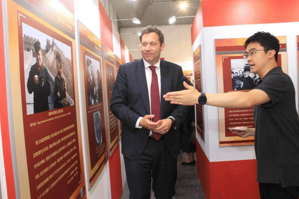 施密特一生持续密切关注中国的发展,先后十余次访华,正是通过实地考察才使得施密特得以较为深入了解一个全面、真实、立体的中国。在参观“关注中国 步履不停”板块的展板时,克林贝尔表示他也曾多次来到中国,不同的城市给他留下了不同的深刻印象。正如施密特所说,若不亲身到访,人们对一个国家的印象就会依赖于夸大的媒体报道。