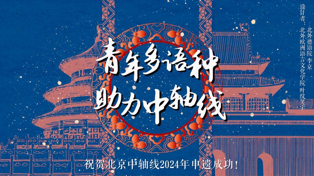 2024年7月27日,中国提名申报的“北京中轴线——中国理想都城秩序的杰作”项目在联合国教科文组织第46届世界遗产委员会会议上通过审议,成功列入《世界遗产名录》!北京外国语大学“‘京’彩文化青春绽放”行动计划之重点项目“话中轴· 语世界”团队热烈祝贺北京中轴线申遗成功!
