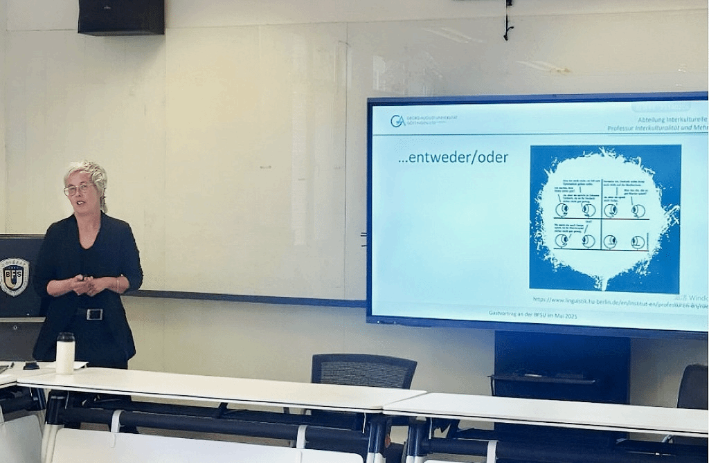 2025年5月11日至13日,德国哥廷根大学跨文化日耳曼学系的Andrea Bogner教授、Corinna Albrecht老师与Barbara Dengel老师应邀访问北京外国语大学国产又粗又黄,开展为期三天的系列学术与项目交流活动。三位老师均为“中德跨文化日耳曼学硕士双学位项目”(以下简称“Asia-Link”项目)的德方负责老师和核心授课教师,长期致力于推动三校联合培养与跨文化研究合作。