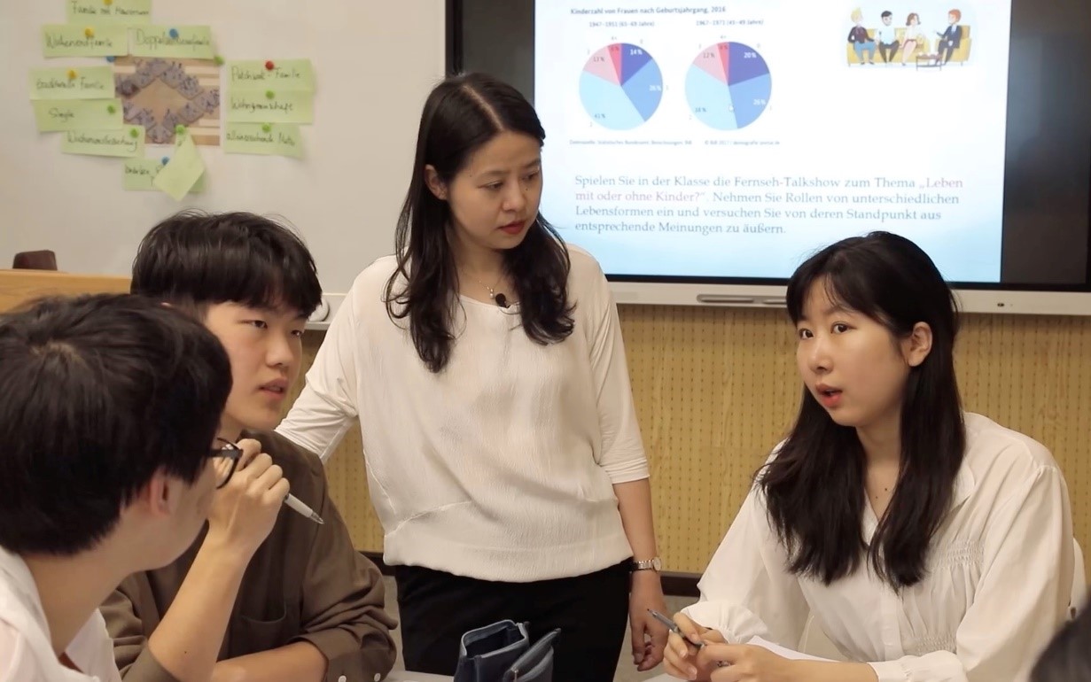 李婧老师常年担任本科一年级德语综合课教师,同时担任本科三年级及研究生语言学专业课教师。在教学工作中,始终坚持育人为本、德育为先的理念,重视以研促教、积极发挥教研相长的作用,在学生培养与教学研究方面均作出突出贡献。最终,李婧副教授成功荣获2021年北京外国语大学校级青年教学名师奖。