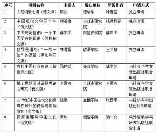 北京外国语大学此次共有8个项目获得立项(4项独立申报,4项与出版社联合申报),在全国高校系列位居首位。自中华学术外译项目设立以来,我校已有17位教师获得立项资助。