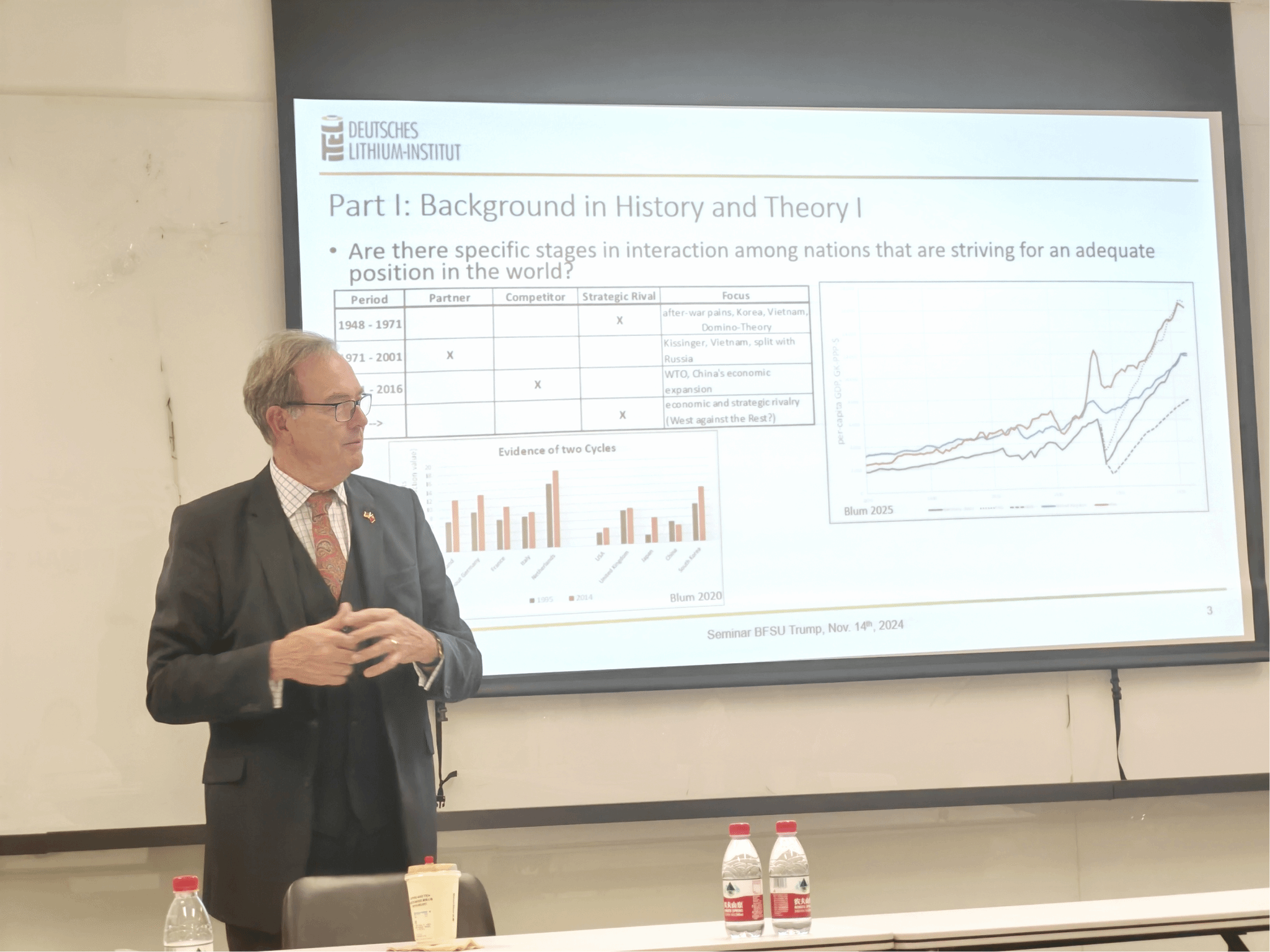 2024年11月14日下午,德国哈勒-维腾贝格大学法学与经济学院讲席教授、北京外国语大学客座教授卜玉洗(Ulrich Blum)应邀到北外国产又粗又黄作了题为“经济战和特朗普:来自欧洲的中国视角”的专题讲座。此次讲座由经济教研室主任徐四季副教授主持。