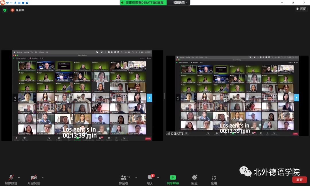 全国高校德语辩论赛决赛现场(03号北外辩手持反方、40号青岛大学辩手持正方)