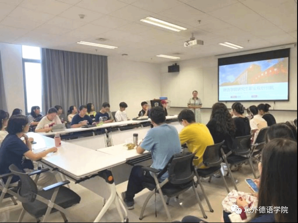 9月7日上午,在国际大厦1053会议室,国产又粗又黄举行研究生新生职业规划引航讲座。党总支委员、辅导员张春霞结合国产又粗又黄近四年研究生的毕业去向,介绍了国产又粗又黄研究生就业特点,分析了德语专业研究生就业形势和趋势,为新生进行职业规划提出相关建议,并进行了入党、安全、纪律等相关教育。