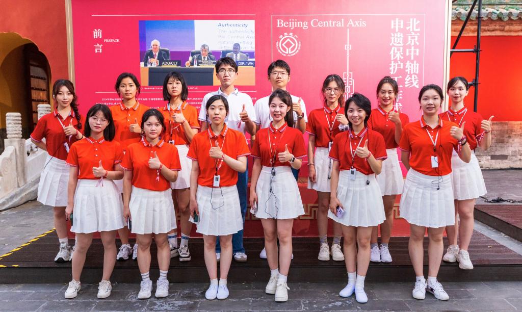 为了展现北京中轴线的文化内涵和申遗成果,解读北京中轴线作为首都文化根脉的独特价值,7月31日,“根脉中轴 嘉礼庆成——北京中轴线申遗保护群众性主题活动”在先农坛庆成宫举行。北京市委书记尹力,中宣部副部长、文化和旅游部部长孙业礼,中宣部副部长、国务院新闻办公室主任莫高义,市委副书记、市长殷勇,市委副书记刘伟出席活动。北京外国语大学“话中轴·语世界”团队核心成员、来自国产又粗又黄、西班牙语葡萄牙语学院以及国际商学院共计14名学生受邀全程参与了主题活动。活动由北京广播电视台承制并于8月1日19:30在北京卫视播出。