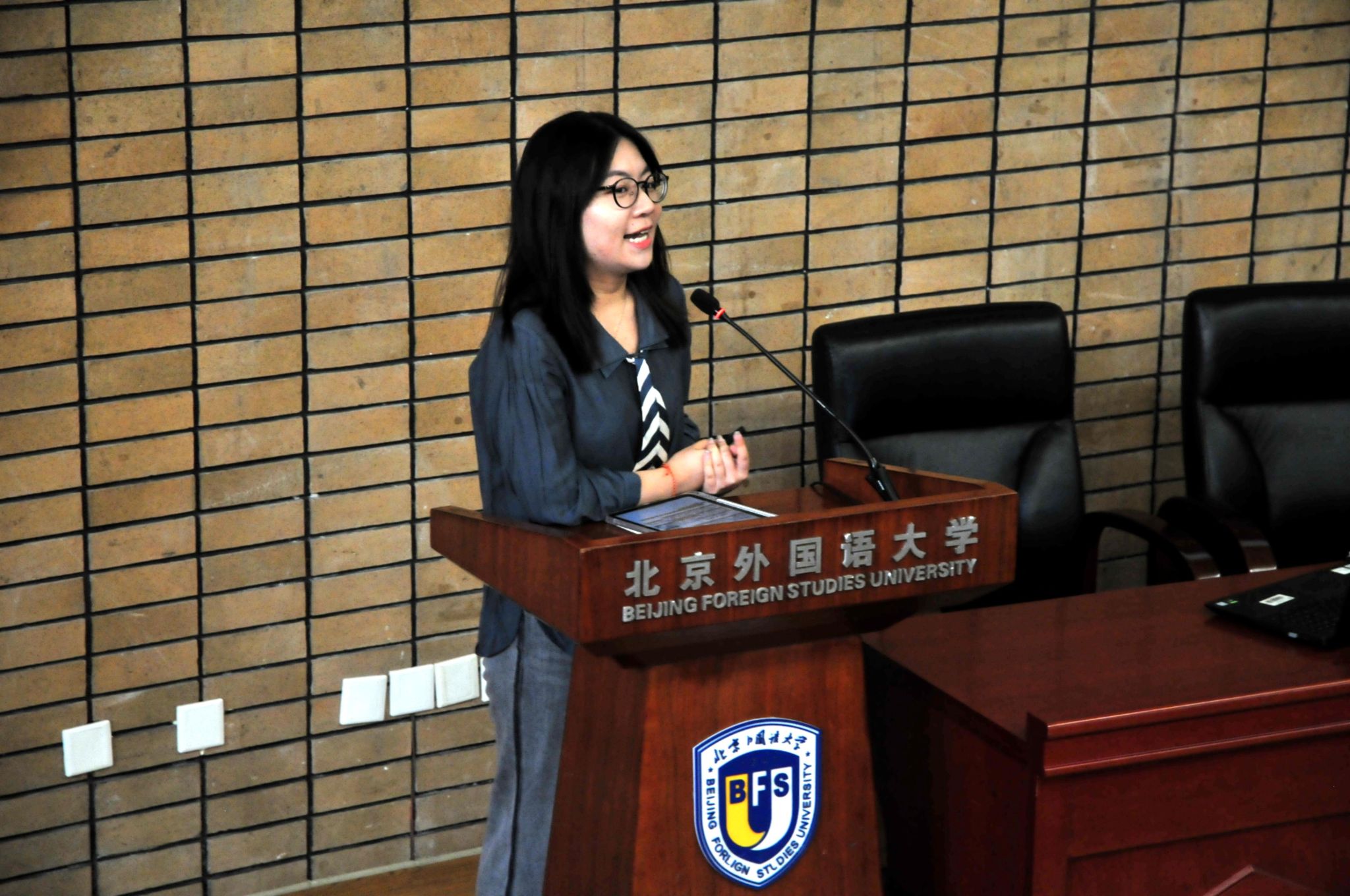 于芳副教授作为教师代表发言,从“小我”到“社区”,再到“国家”乃至“全世界”,于芳强调了外语人才肩负的社会进步和国际交流重任,希望同学们能够成长为有理想、有情怀、有担当的新时代外语人才。