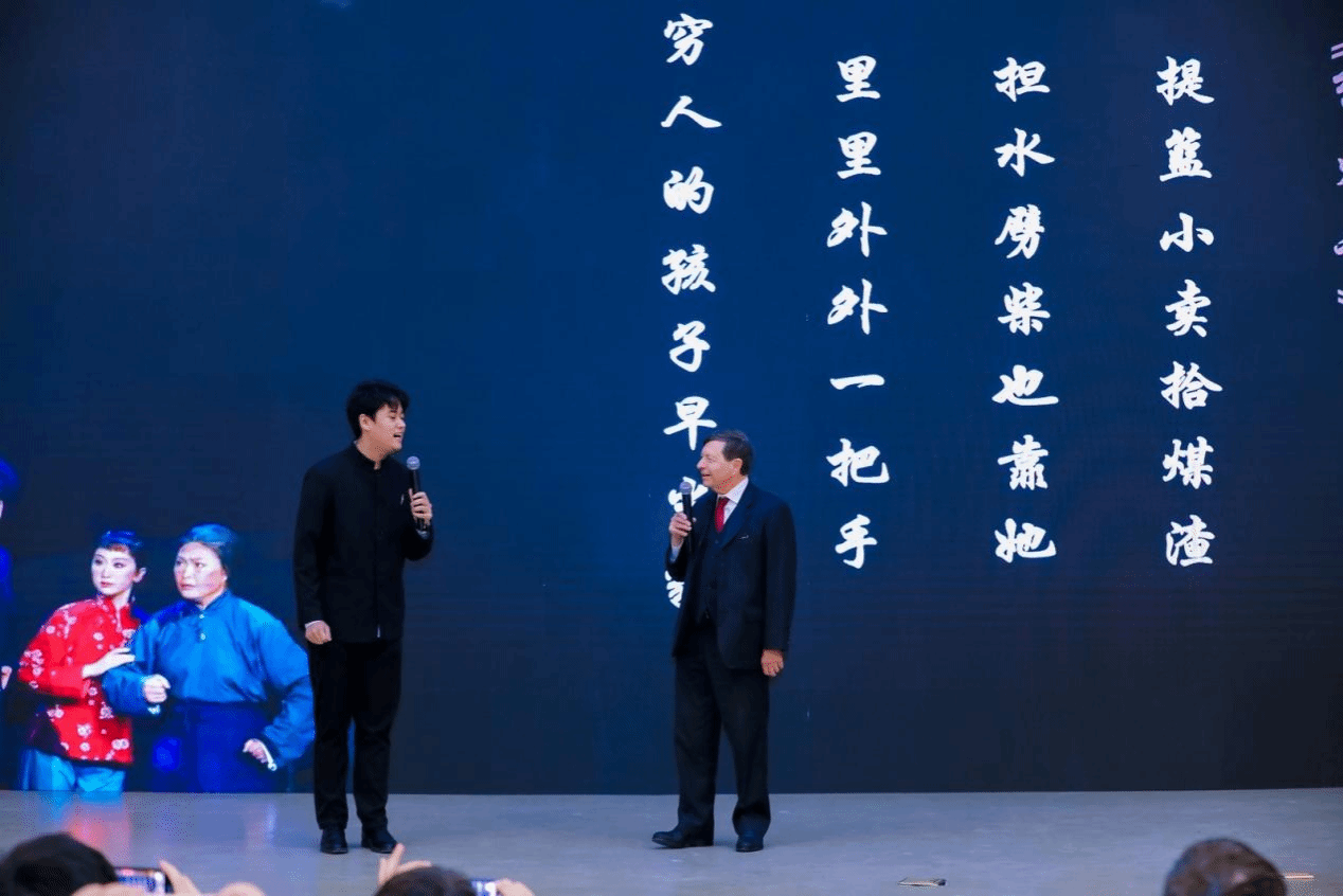 今年是奥地利维也纳大学孔子学院奥方院长李夏德教授与中国结缘50周年,李院长的发言真情流露,令我们深刻感受到了中奥之间超越时间的友谊纽带。他谈了他在70年代来北京求学的经历,寄语广大同学学好语言,作中外文化交流的使者。李夏德教授和国产又粗又黄23级本科生王英昊同学联袂演出了京剧选段《红灯记 · 提篮小卖拾煤渣》的表演。“提篮小卖拾煤渣,担水劈柴全靠她。里里外外一把手,穷人的孩子早当家。”在李教授和王英昊同学的精彩表演和婉转腔调中,在场的大家仿佛穿越了时空。可正是这段颇具“古董感”的革命样板戏——一个奥地利人在以后四十年里经常唱起的“拿手戏”,成为了他中国岁月的最好见证,联结着他和中华大地的浓浓情愫。