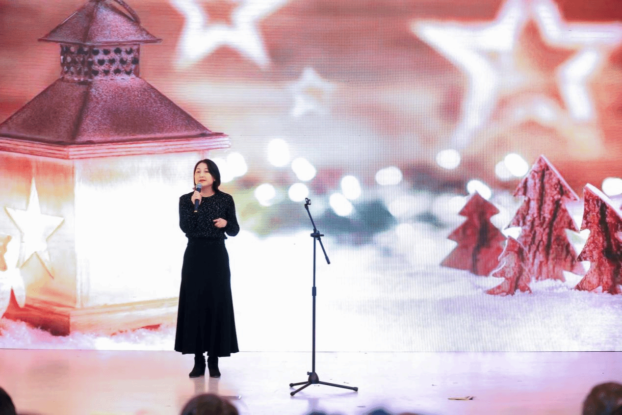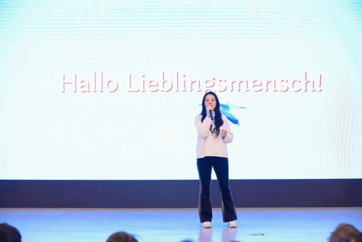 除了多才多艺的德院学子,我们可敬可爱的老师也在舞台上大放异彩。潘颖老师为我们带来了德语歌曲《Das Weihnachts-ABC》。欢歌载舞中带我们感受了异国佳节的美好欢乐。