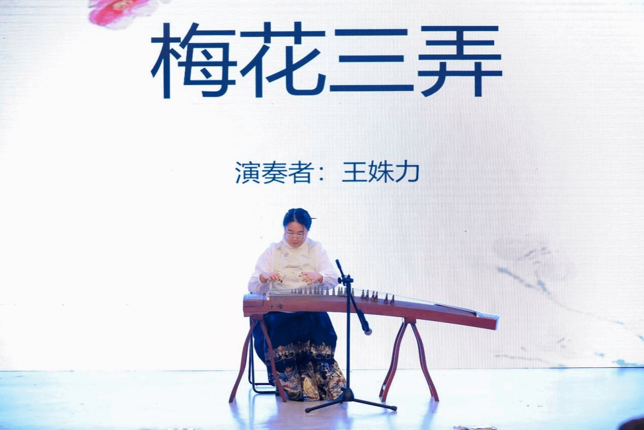 24级研究生王姝力带来的节目是古筝独奏《梅花三弄》。古人尚梅,因其傲霜凌寒,品性圣洁,故比喻人的高尚品格。王姝力同学筝声绕梁,仿佛使大家看见了雪夜中凌霜盛开的傲雪红梅,使大家一起感受到了古人对高尚品格的歌颂与赞美。