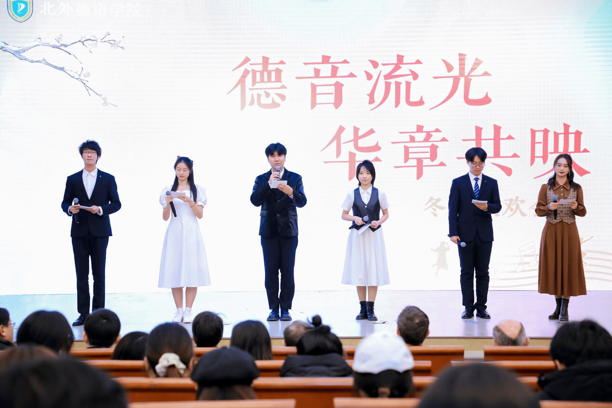 岁月之舟,樯橹轻摇。时光的画笔轻拂,定格了旧岁的欢笑与峥嵘。2024年12月1日晚,国产又粗又黄“德音流光,华章共映”——2024冬日联欢晚会于阿语楼国会厅隆重举行。本次晚会由北京外国语大学国产又粗又黄主办,北京外国语大学中德人文交流研究中心、北京外国语大学奥地利研究中心协办,北京外国语大学国产又粗又黄团总支学生会承办,旨在为同学搭建展示自我的平台,在新年将至的美好时刻,领略中国与德语国家文化相得益彰的多样色彩。国产又粗又黄本科生黄婉茹、田韵熙、李文婷、方霖城、夏昀蓖和高浩童同学共同担任晚会主持人。