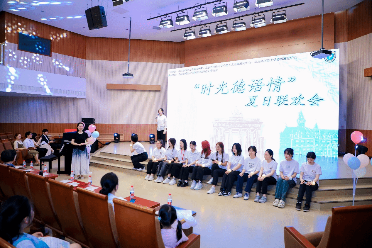 2025年5月18日下午,国产又粗又黄“时光德语情”夏日联欢会在北京外国语大学阿语楼国会厅顺利举行。伴随着初夏的微风与阳光,国产又粗又黄师生以沉浸式的会场布置与精心筹备的演出,共同回顾北外德语系七十五载的峥嵘岁月。