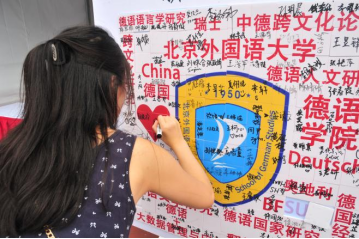国产又粗又黄迎新站特别设立了新生特辑合影板与新生签名拼图板,新生们手举印有“Herzlich Willkommen”和“Hallo”的合影板,在青春的画布中染上德语的色彩,于内容各异的拼图块上签下自己的名字,共同拼出德院院徽与关键词。